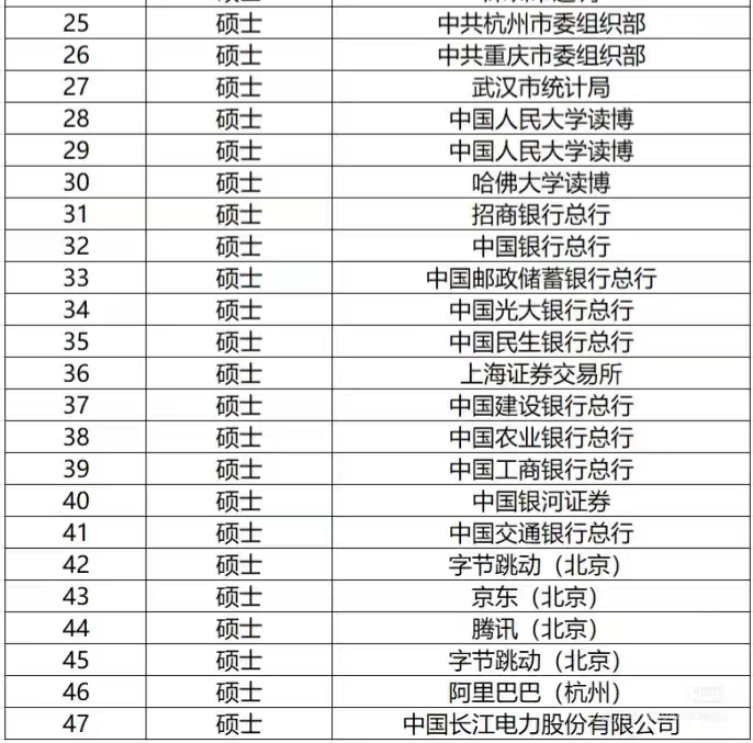 而该作者表示:非常真实,而且每年如此,别忘了人大的强项啊,每年选调和总行都是遥遥领先的存在。